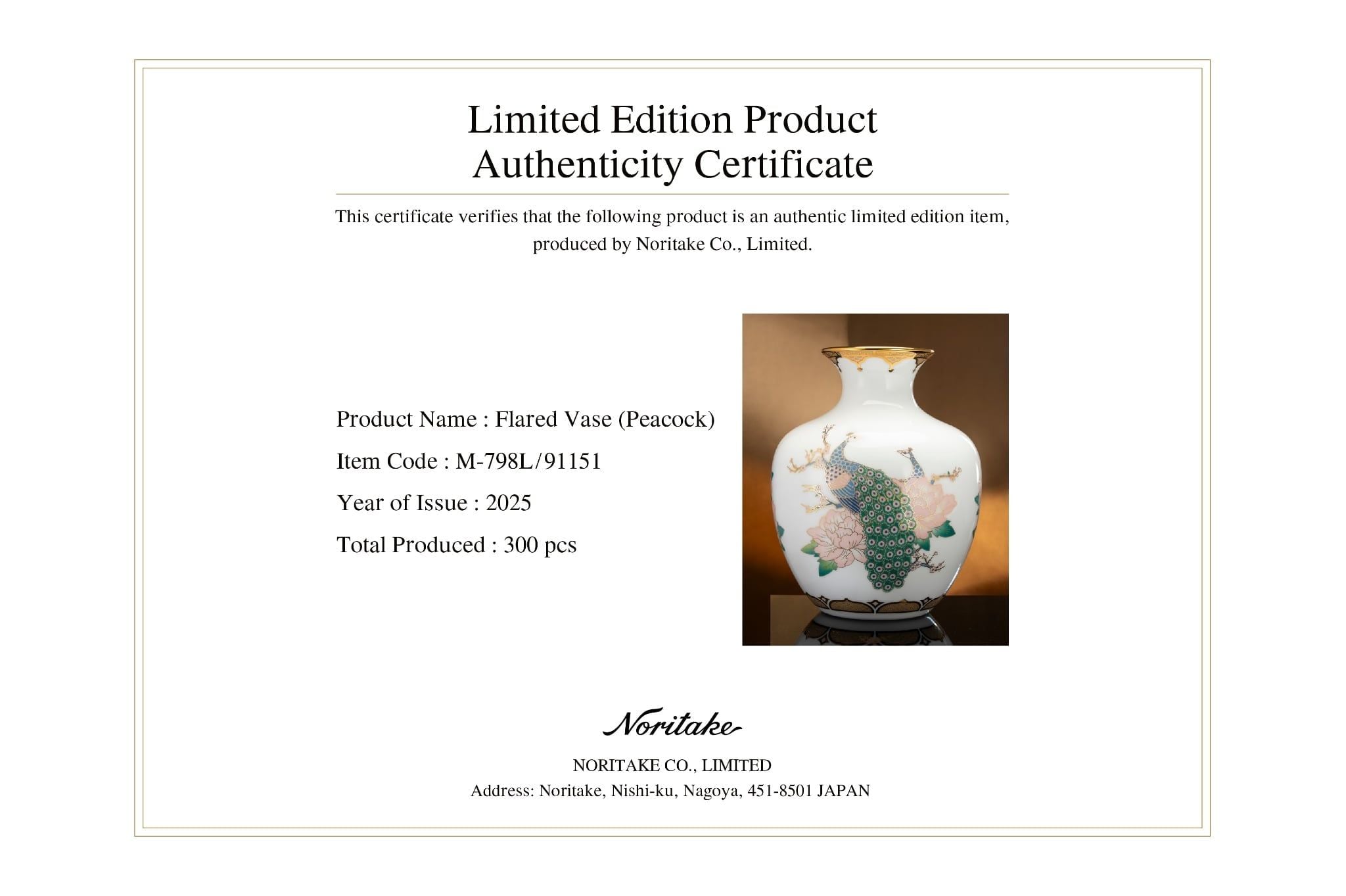 Năm 2025, Bình Tài Lộc Noritake được giới hạn ở số lượng 300 chiếc. Mỗi chiếc bình đều đi kèm Limited Edition Product Authenticity Certificate – chứng nhận phiên bản giới hạn do Noritake phát hành quốc tế. Đây không chỉ là giấy xác thực mà còn là lời cam kết về tính độc bản, về giá trị văn hóa và về chất lượng của từng tác phẩm.