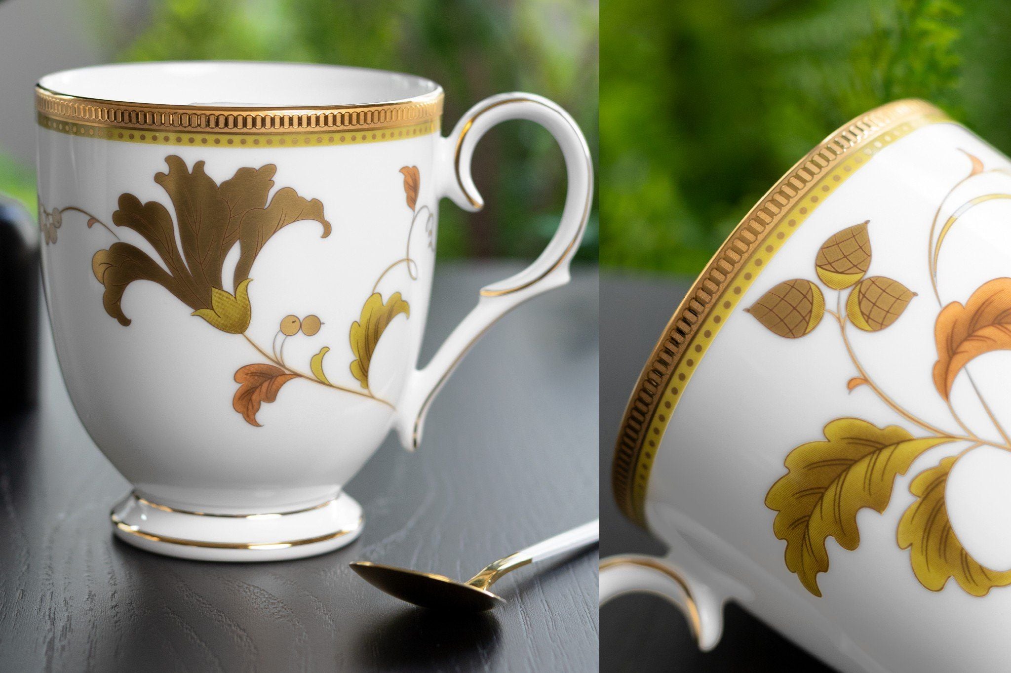 Bountiful Garden gây ấn tượng bởi hoa văn dịu dàng phác họa cỏ cây và loài chim công mềm mại cùng đường viền 18K nổi bật. Cốc Bountiful Garden (310ml) chất liệu sứ trắng, viền vàng nguyên chất 18K sang trọng. Sản phẩm phù hợp để sử dụng trong gia đình, trên bàn làm việc.