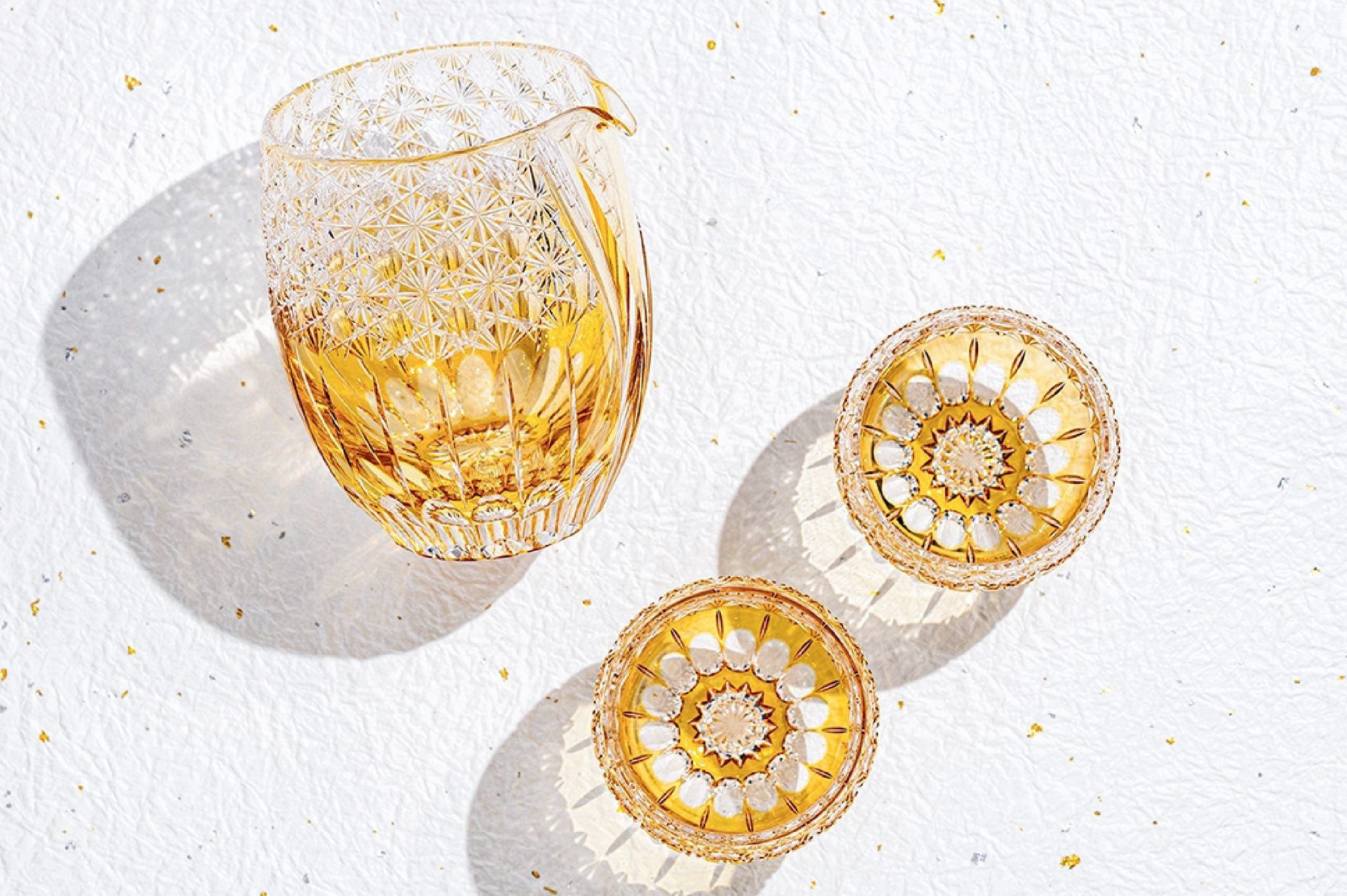 Một chiếc ly sake lạnh trong suốt như pha lê, được bao bọc bởi ánh sáng, có thể biến một khoảnh khắc thưởng thức đơn giản thành trải nghiệm đáng nhớ. Những tia lấp lánh và bóng đổ nhẹ nhàng khiến bàn tiệc trở nên sinh động hơn, đồng thời tôn lên vẻ đẹp tinh tế của rượu sake.
