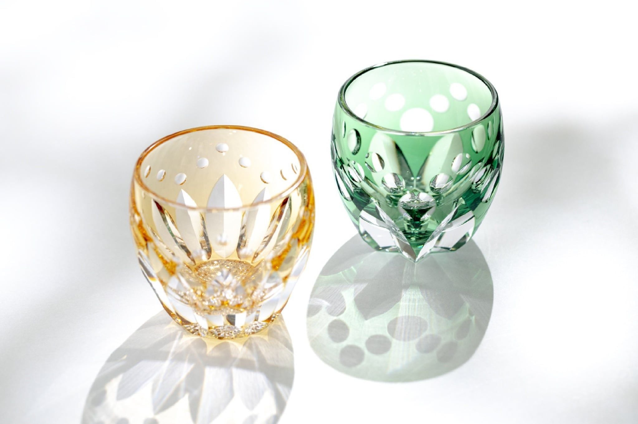 Trong văn hóa Nhật Bản, đỏ và trắng luôn được xem là hai gam màu mang ý nghĩa tốt lành. Sự kết hợp của chúng thường xuất hiện trong các dịp lễ hội, đám cưới hoặc những buổi chúc mừng đầu năm. Những chiếc chén sake pha lê mang hai gam màu này không chỉ đẹp mắt mà còn gợi lên bầu không khí vui tươi và trang trọng. Khi ánh sáng chiếu vào, sắc đỏ rực rỡ hòa cùng độ trong suốt của pha lê tạo nên vẻ sáng bóng trang nhã.