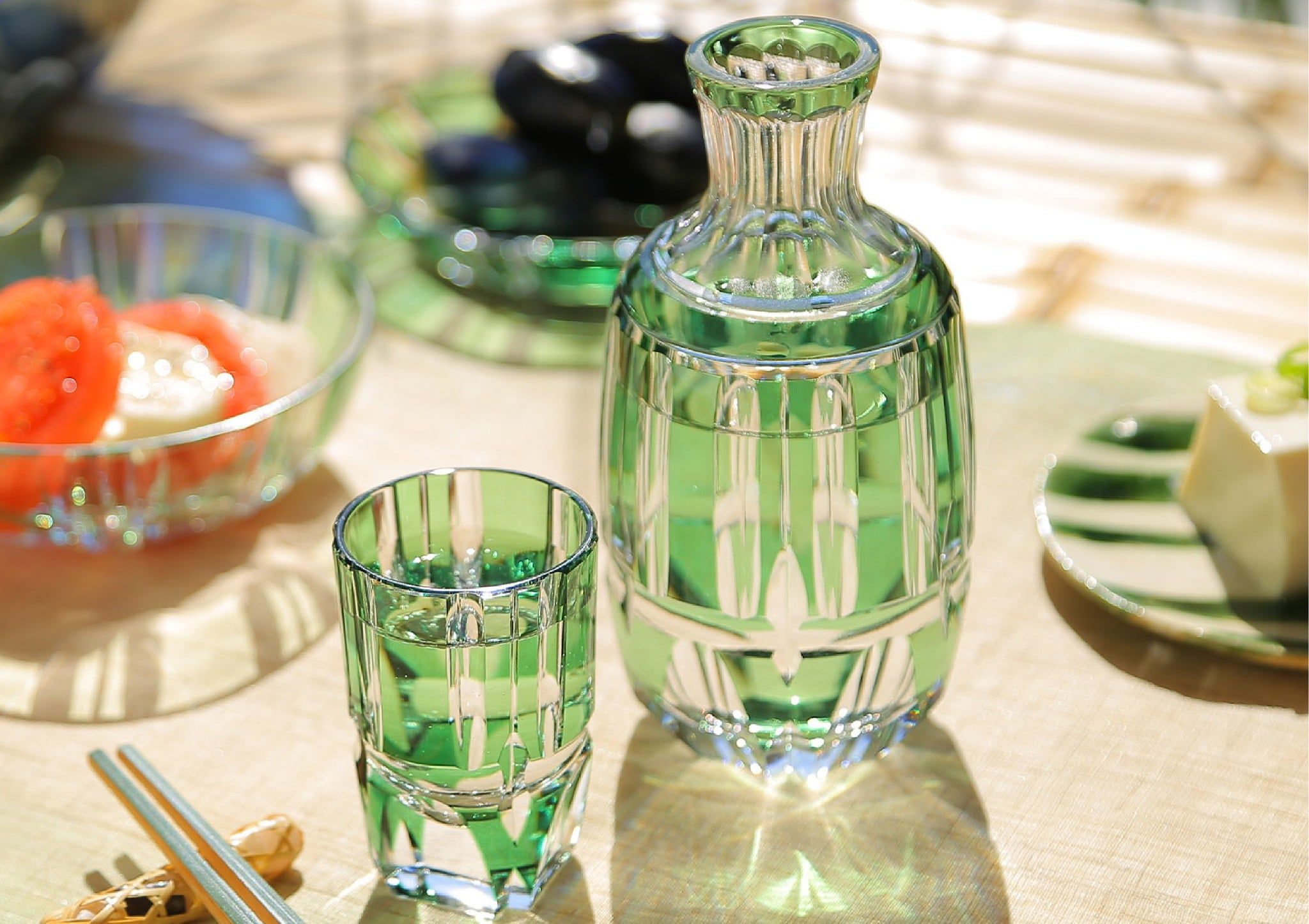 Một chiếc chén sake lạnh được chế tác từ pha lê vì thế mang đến nhiều hơn một chức năng. Nó cho phép người dùng tận hưởng ánh sáng, quan sát những chuyển động tinh tế của rượu, và cảm nhận vẻ đẹp thị giác song song với hương vị.