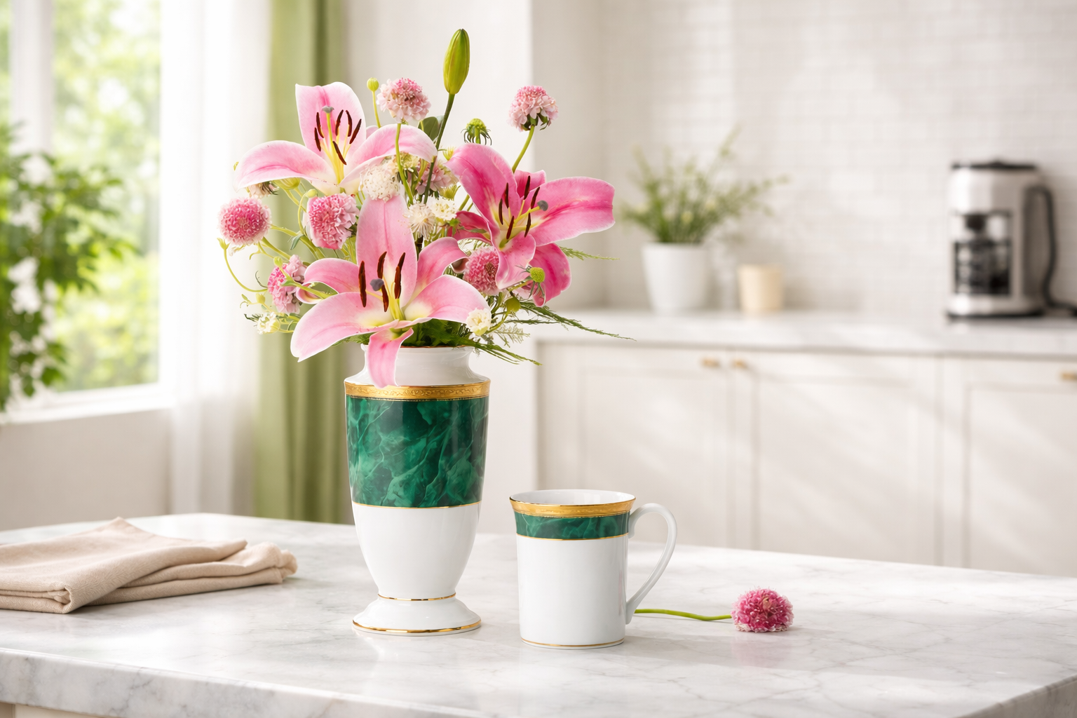 Majestic không bắt bạn phải chọn một trong hai giá trị ấy, mà giữ cả hai trong cùng một quyết định. Bình hoa nâng tầm không gian sống, cốc sứ nâng niu thói quen thường nhật. Khi đặt cạnh nhau, bộ đôi này tạo nên một cảm giác liền mạch, như thể mọi thứ đã luôn thuộc về cùng một tổng thể.